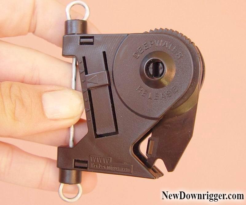 Downriggers consist of four major components, the weight, cable, pole, and a spool. A fishing line is attached to the downrigger cable as a result of a "line release." The weight is normally a five-to-ten-pound mass of lead that is connected to the stainless steel wire. The spool is brought up either by a manual crank or via an electric motor.